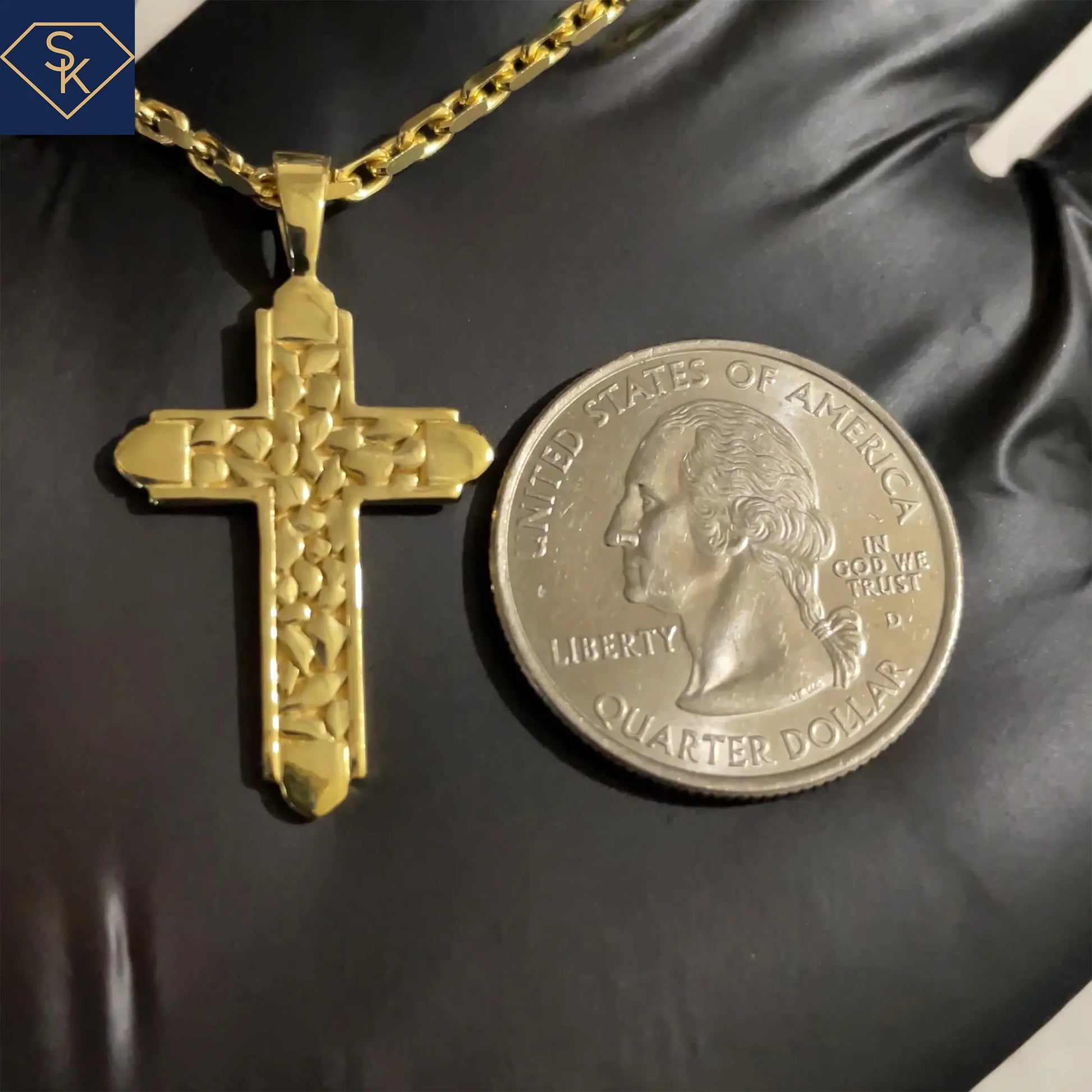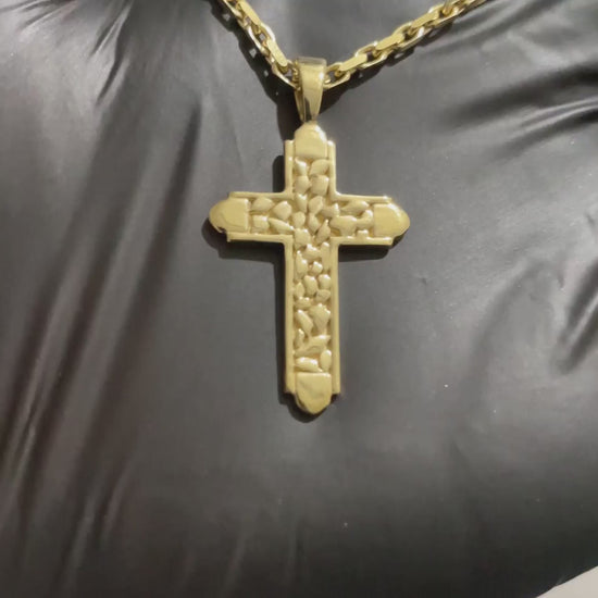 The cobble stone texture adds a touch of sophistication and exclusivity to this luxury cross pendant. Crafted with the finest materials, it exudes elegance and quality. Complete your look with this artful and timeless accessory.